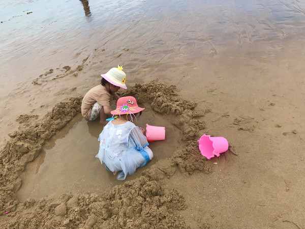 踩水踩沙,感觉到细腻的沙子从脚缝间滑过。