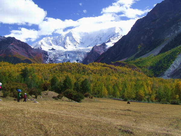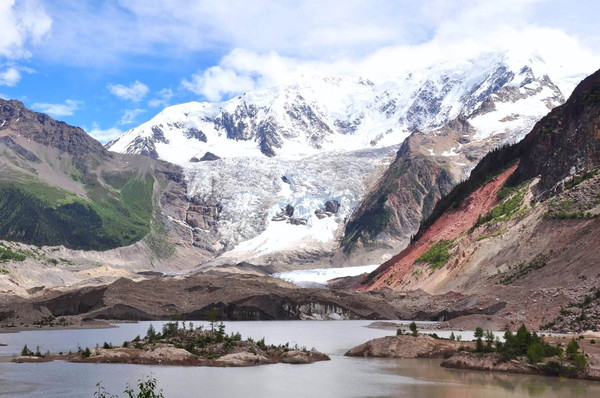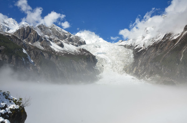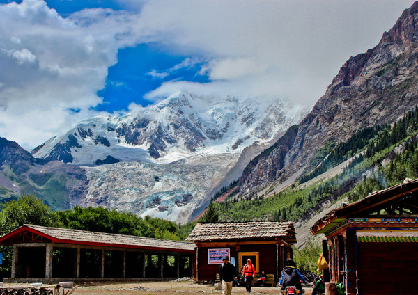 该冰川常年雪光闪耀,景色神奇迷人。这是典型的现代季风型温性冰川,类型齐全,尤以巨大的冰盆,众多雪崩,陡峭巨大700-800米的冰瀑布,消融区上游的冰面弧拱构造,以及冰川末端冰湖和农田、村庄共存为特点。