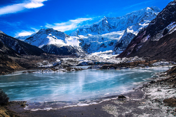 绒布冰川位于珠穆朗玛峰山脚下,复式山谷冰川——绒布冰川是这里最大、最为著名的冰川。绒布冰川长达26公里,平均厚度达120米,最厚处超过300米以上,冰舌平均宽14公里,面积达86.89平方公里。冰川上有千姿百态、瑰丽罕见的冰塔林、冰茸、冰桥、冰塔等,千奇百怪。被评为中国最美六大冰川之首。