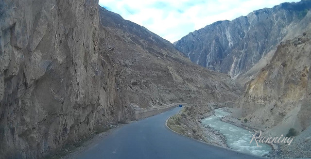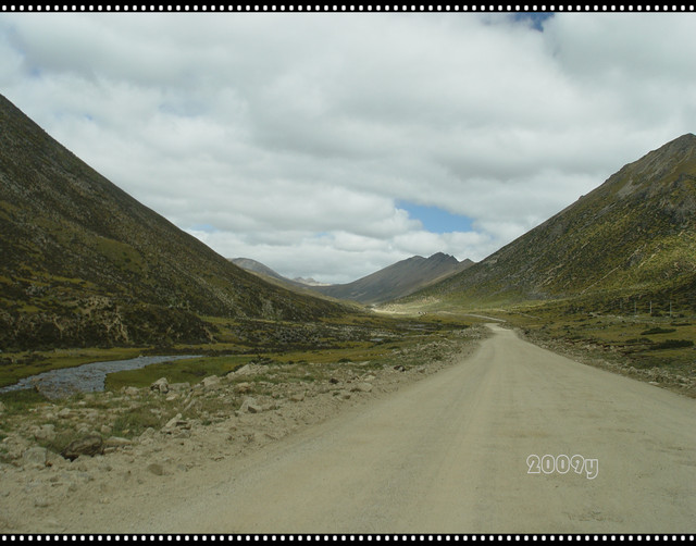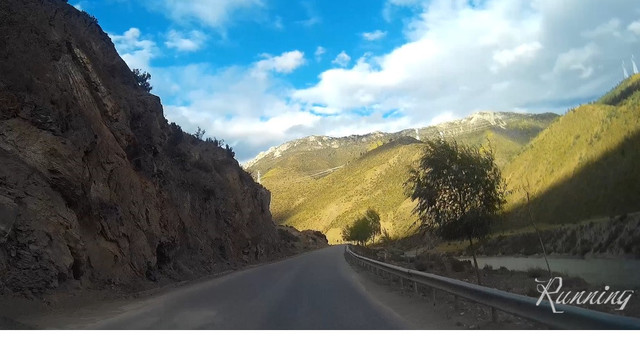 道路沿着山间的溪流蜿蜒