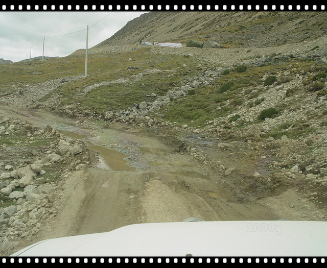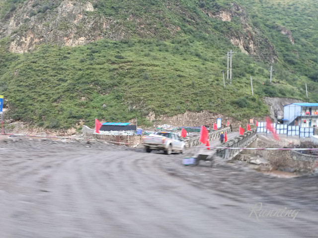 这一段是正在施工的——跟着车辙开到这里,前面有人在摇手——此路不通