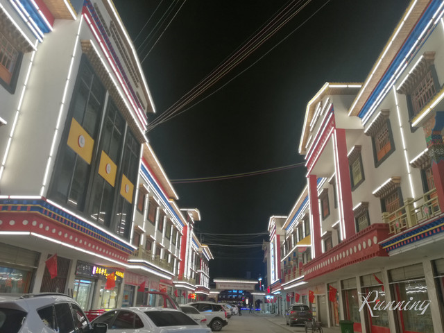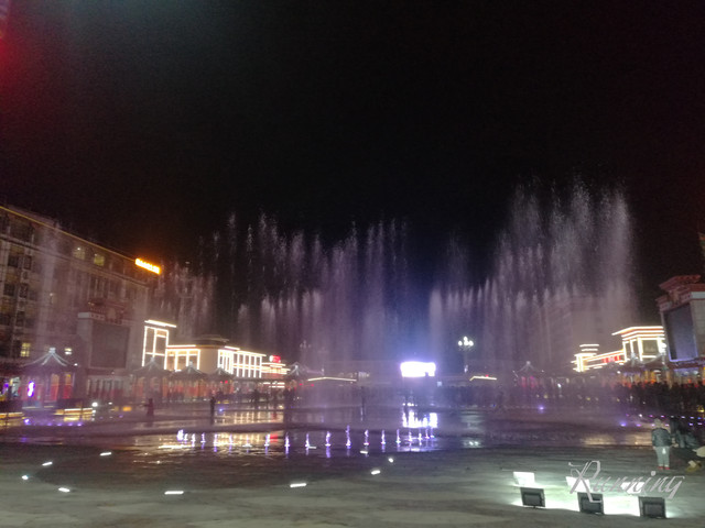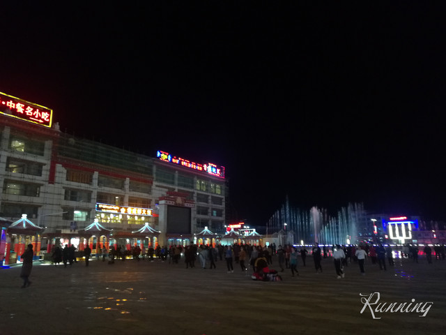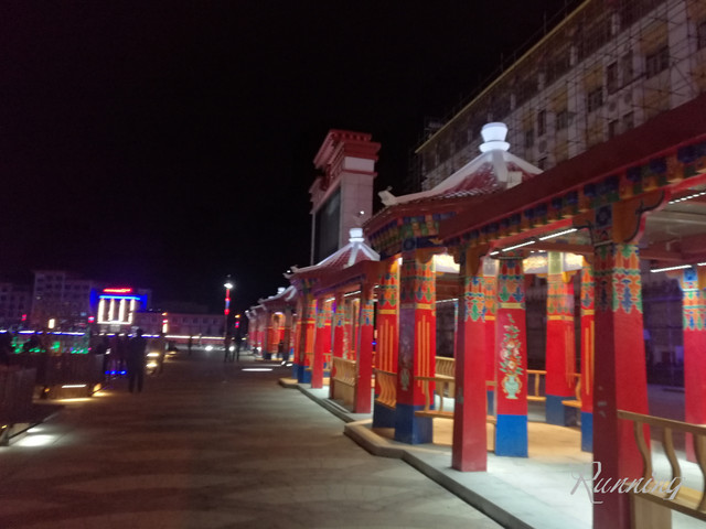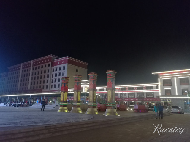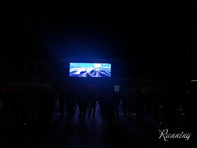 广场的另一边显得黑魆魆的——大屏幕上放着西藏风情的音乐,人们围成圈跟着音乐在跳舞。。。