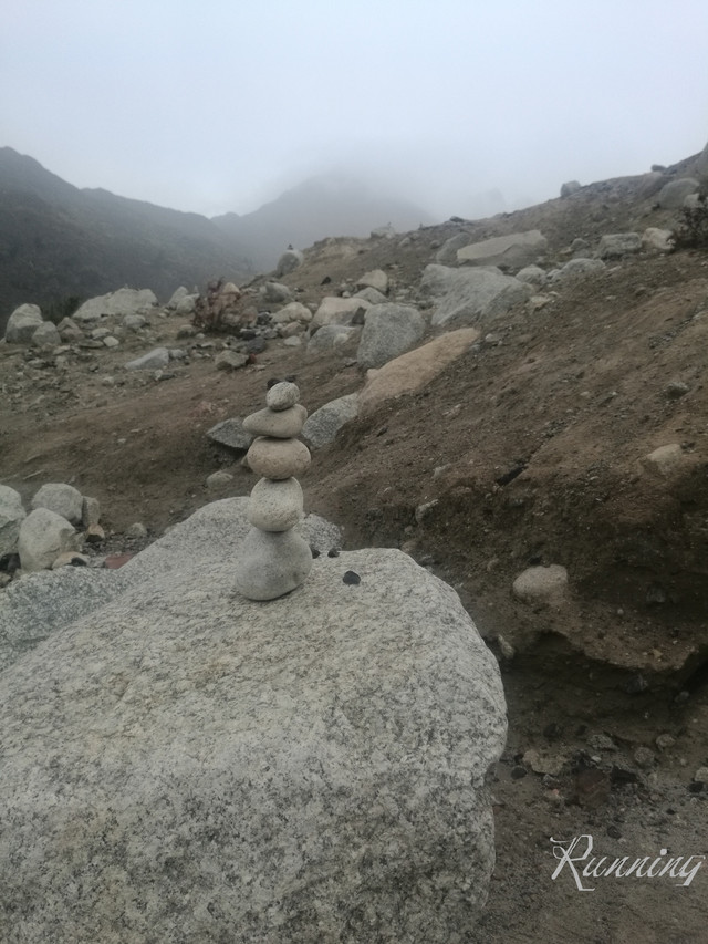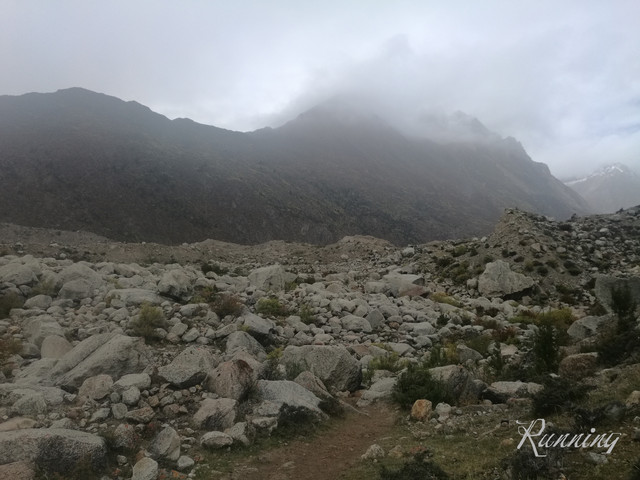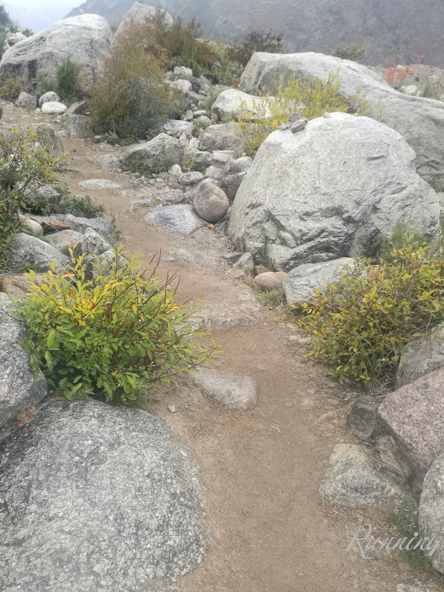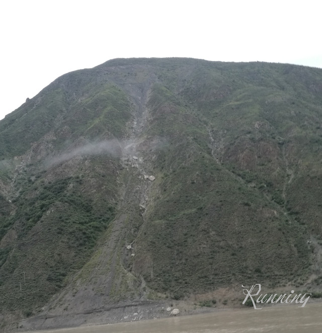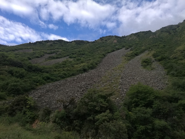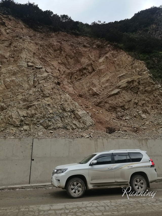 下山前行 —— 刚刚经历过雨季,松碎的山坡很容易在雨水中形成塌方冲跨挡土墙