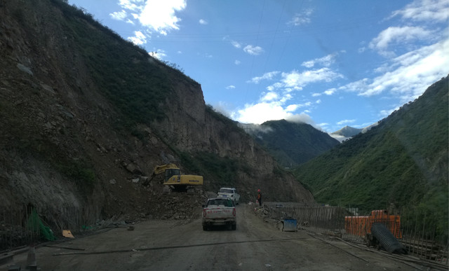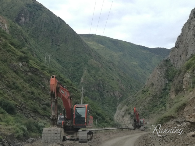 G318道路边上,经常会看到铲车推土机之类的大型工程机械,有些就搁在那里,现场没有施工人员。估计是备用的。如果遇到滑坡塌方之类的,立刻来人就可以现场作业了。