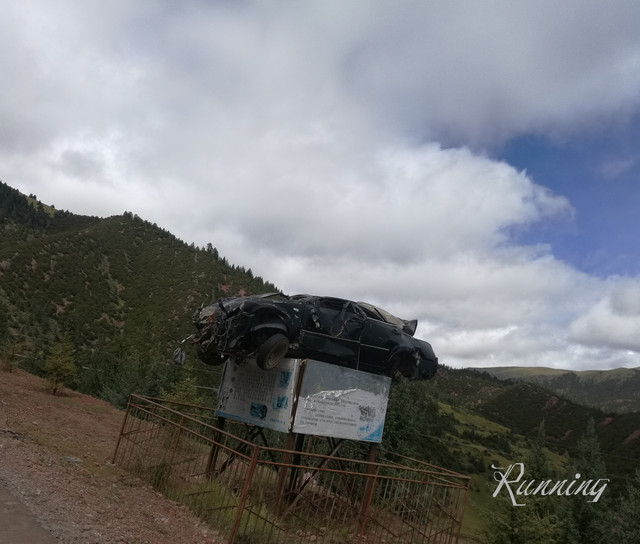 没有停下细看——不知是何时发生在这里的一起事故—— 车毁了,就放在这里,成了警示标志。。。(沿途中看到不少。。。)
