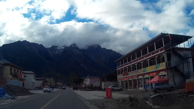 经过卡均村,远远地可以看到雪山