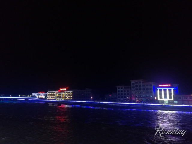 霓虹灯倒映在江水中,帕隆藏布江显出了夜晚的柔美。