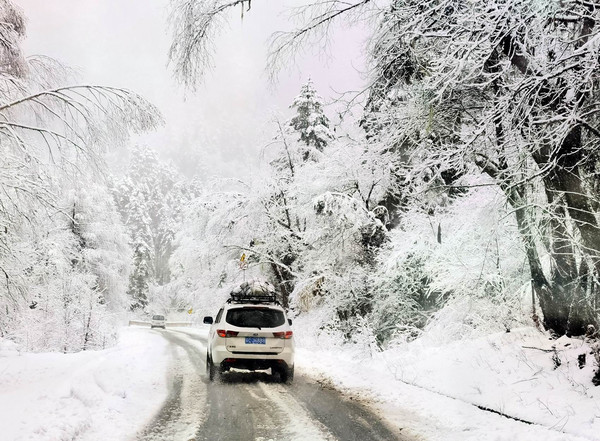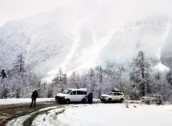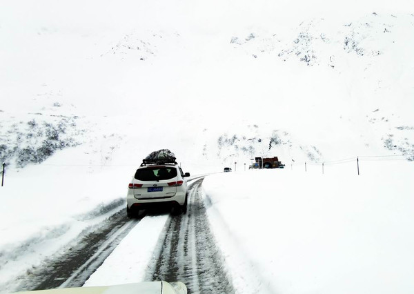 开始,大家还迷恋沿途的雪景,压抑不住激动的心情,不断的停车拍照。