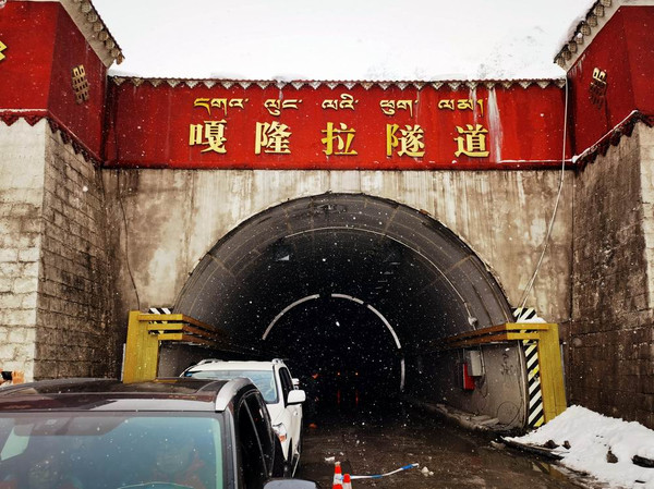 经过几个小时的冰雪路,远处终于出现了嘎隆拉隧道。嘎隆拉隧道,扎墨公路上的一个重要节点,从1961年10月开始勘探,一直到2013年10月31日正式通车,前后长达50几年,墨脱告别了“高原孤岛”,同时也宣告中国最后一个未通公路的县城正式通车。