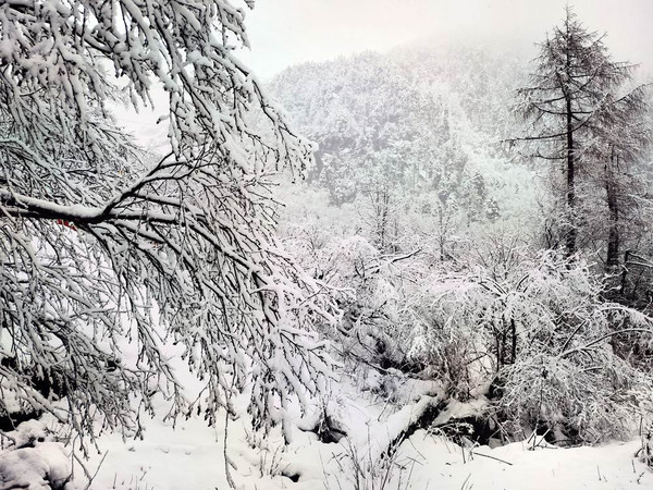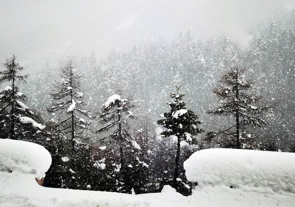 果然坏消息来了:扎墨公路80公里处发生雪崩,所有进墨脱的车辆,一律从嘎隆拉隧道调头返回!图为司机的朋友发来的雪崩现场照片。