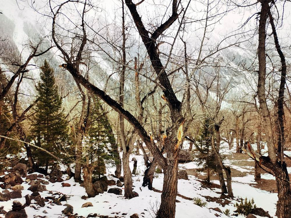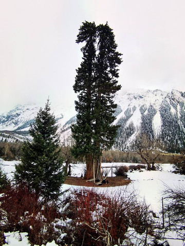 冰川下端是针阔叶混交林地,可惜这里有许多树木已经枯死。