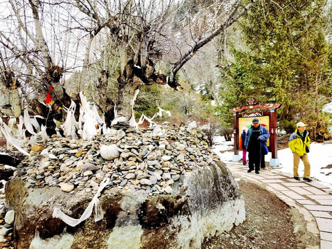 我们是结束了来古冰川的游览后去米堆冰川的。途中在距离米堆冰川12公里的地方,经过帕隆藏布江畔一个红色旅游景点。