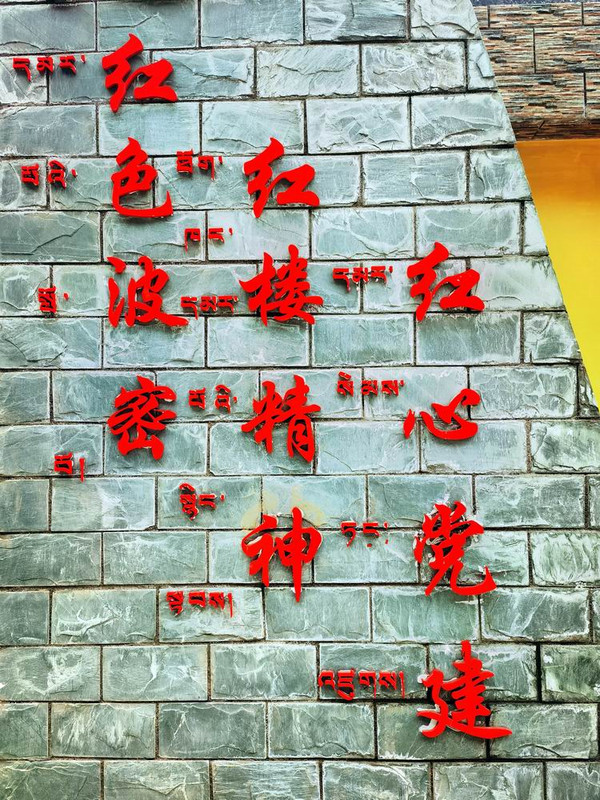 “红色波密,红楼精神,红色党建”碑。