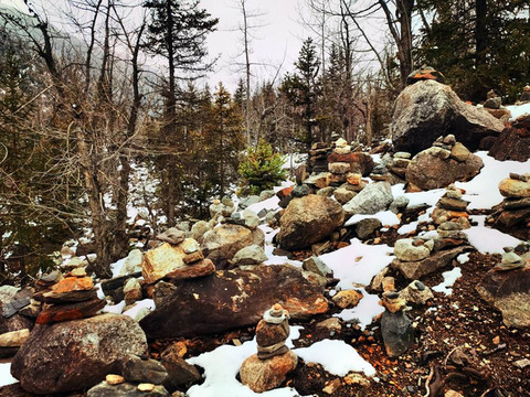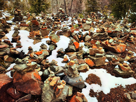 登山路两旁,有许多玛尼石(许愿石)。