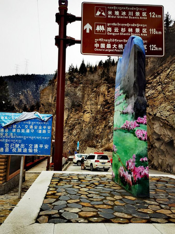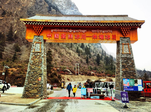 米堆冰川在318国道旁,牌楼上自封为“中国最美冰川”。图为米堆冰川的牌楼。