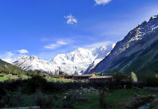 成群的牛羊、古朴的藏式民居、雄伟壮观的雪山,这里既是世外桃源,也充满生活气息。