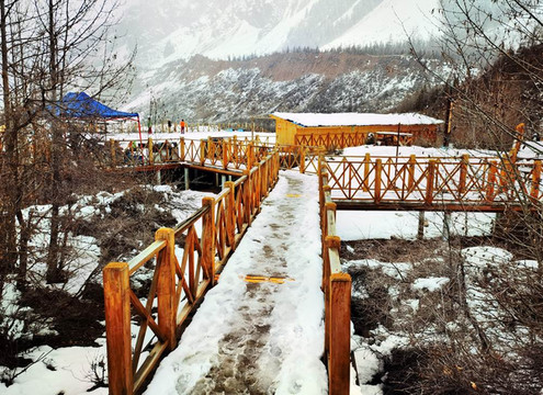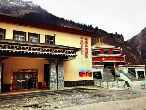 米堆冰川位于波密县玉普乡境内,距波密县城103公里,是西藏最重要的海洋性冰川,也是世界上海拔最低的冰川。图为米堆冰川的游客中心。
