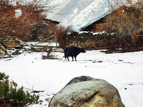 米堆冰川脚下就是一个叫米堆的藏族村子,它属于西藏林芝地区波密县玉普乡。我们徒步穿过小村庄。