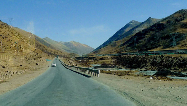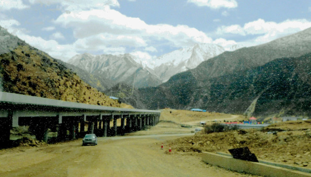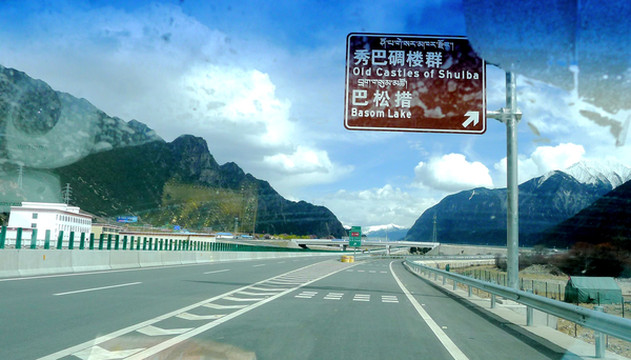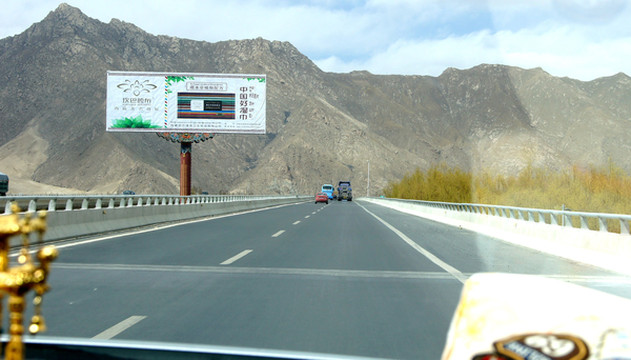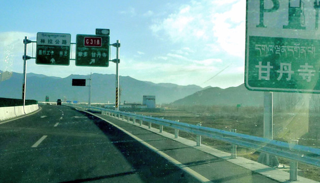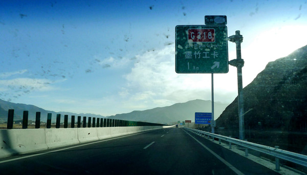 3月26日,晨起X.J.出现明显高反症状,整个人都昏昏沉沉,我自己尚好,只是稍微有点儿头痛。昨晚我也没有睡好,一直在做梦,好像总是在焦虑有某件事情办不成功。宾馆早餐7点开始,吃罢邓师傅车来,我们8点出发。先走国道G318,然后在拉萨城东的教育城附近驶上“拉林高速”,西藏的高速公路都不收费,只须出示身份证即可上路。“拉林高速”与国道G318并行,8:41过达孜隧道,9:01经过甘丹寺,9:20在墨竹工卡下高速,转入国道G318,高速公路依旧是与G318并行,只是尚未完工。