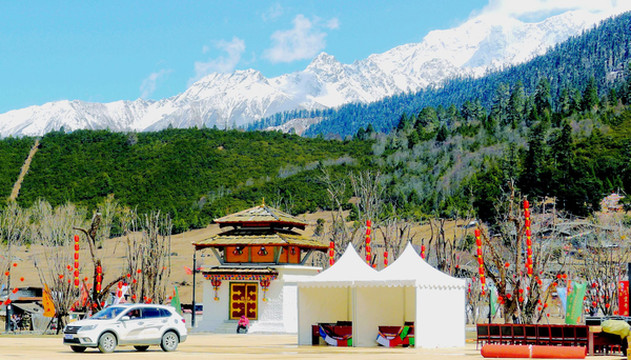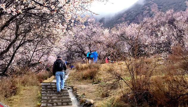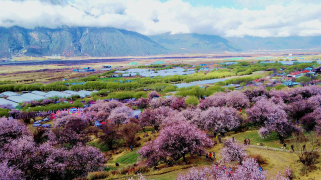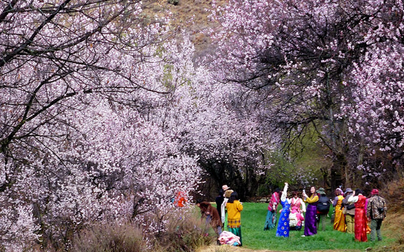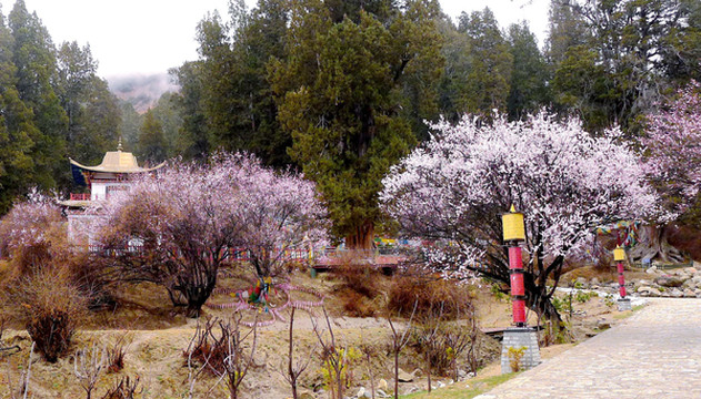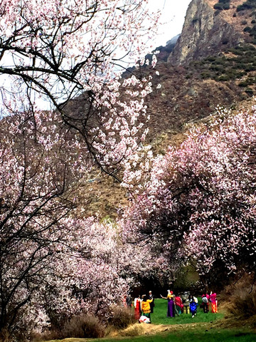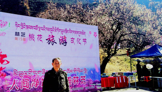 9:20离开巨柏园,继续沿G318向东,前往“嘎拉村”,那里有座“桃花园”,是当地举办“林芝桃花旅游文化节”的主会场。林芝地域随处可见桃花,但嘎拉村的桃花距离林芝市区最近,又恰好是在国道路边,所以被选定为桃花节的主会场。据说,这几日在波密、米兰、工布江达等县的不同地点也都设置了桃花节的分会场。
