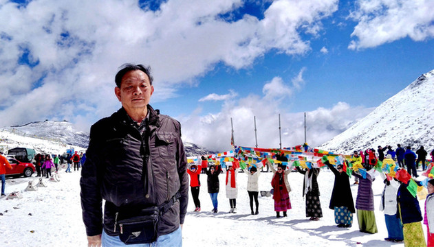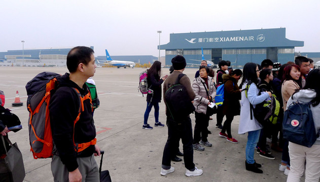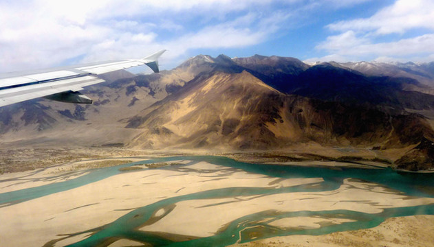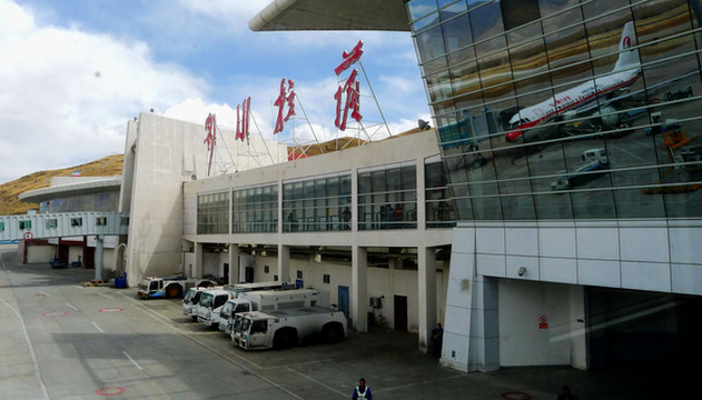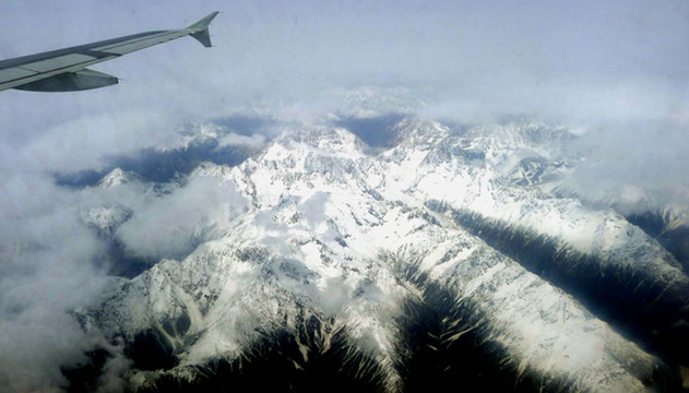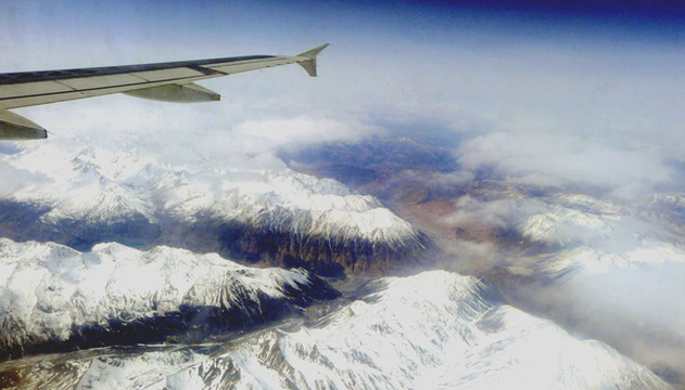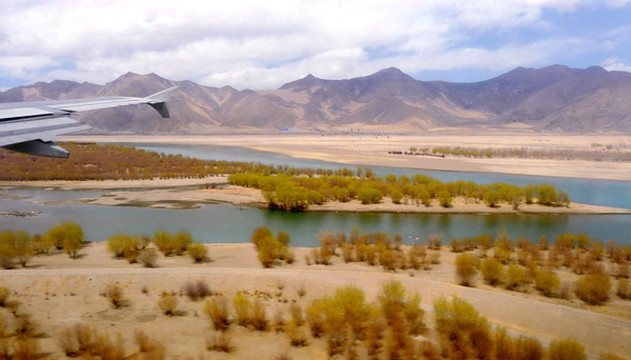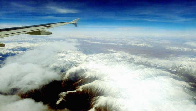 3月25日从厦门出发,我们是购买联票:7:40厦航MF8401飞成都,12:50在成都转搭国航CA4112,15:00左右到拉萨。当日起了个大早,6:30赶到厦门高崎机场,候机楼外已是人声鼎沸,随处可见手举各色小旗的导游。11:00飞抵成都,双流机场候机大厅冷冷清清,这与厦门机场的热闹场景形成鲜明对比。我们未走出候机楼,就在行李领取大厅内办理了转机。我执意要个靠窗的座位,引起儿子“不屑”,他嫌我“老土”,声称旅途舒适才是最为重要,应该选择靠过道的座位。班机晚点起飞,13:23升空,14:30开始看到雪山,我手持相机一顿狂拍,X.J.这时方才醒悟,原来靠窗还有这个好处。我已是二次进藏,所以有此先见,儿子也不得不佩服“姜还是老的辣”。