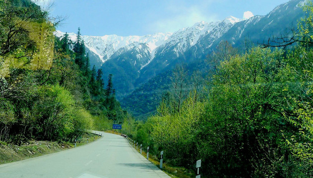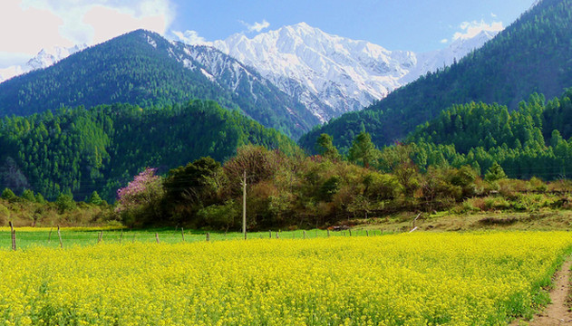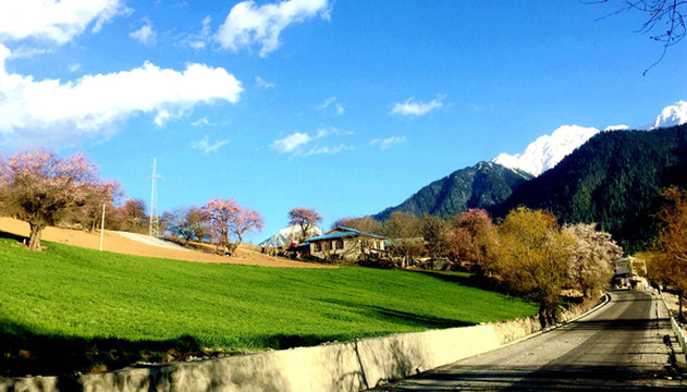 D2:八一镇→嘎拉桃花村(林芝)→色季拉山口(海拔4780米)→鲁朗观景台→鲁朗镇→排龙天险→通麦大桥→索通村(油菜花)→巴卡村(雪山)→嘎朗桃花沟→波密