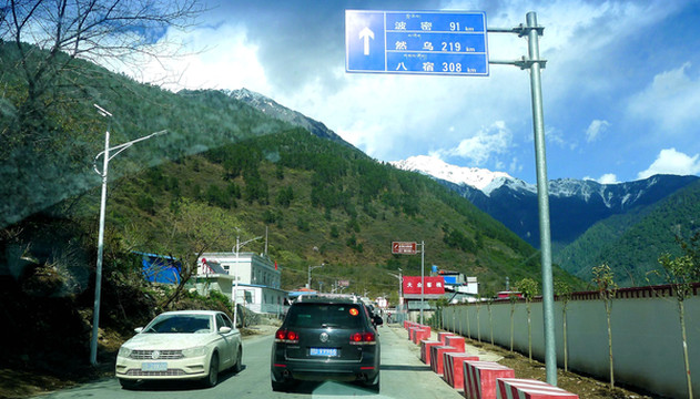 16:08又在巴河镇出口下高速,这里有条岔路通往“巴松措”,但它并不在我们预定的行程之内,因为网上介绍巴松措最美是秋天,而且,它的海拔比拉萨更高,X.J.此刻已是头痛难忍,只盼早点能到林芝。于是,我们下高速后又再上国道G318,继续向林芝方向行驶。