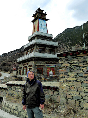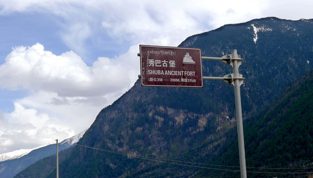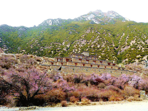 16:16抵达“秀巴古堡”,只在停车场上稍事逗留,拍拍照片,因为事先已从网友处获悉,100元/人的门票根本不值,而且,古堡就在路边,从公路上就可以看到。一位藏女走上前来驱赶,声称我们不买票就不得在停车场上逗留,因为停车场也属景区地盘。古堡脚下的桃树已经开花,这让我们甚觉宽慰,因为一路上都在揪心林芝的桃花是否已经开放。