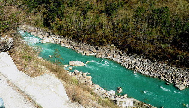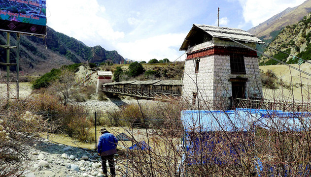 饭后继续前行,建造中的拉林高速依旧是与国道G318并行,路边开始出现尼洋河,它发源于米拉山,流经“工布江达”向东,在林芝市的巴宜区汇入雅鲁藏布江。14:50在“太昭古城”停车,景区位于尼洋河对岸,购票后可以走过一座廊桥,跨河进入景区,然而,网友曾说里面其实啥都没有,于是,我们只在河边拍了拍照,然后就继续赶路。