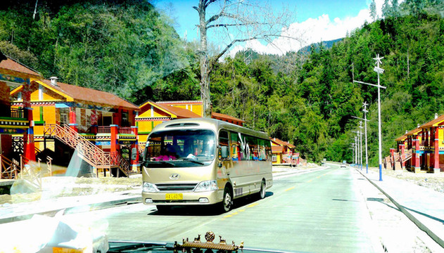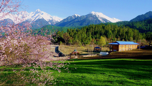 14:40离开鲁朗,继续前行驶往波密,14:50经过扎西岗村,邓师傅说那里就是老鲁朗镇,内有很多民宿、客栈,他以前的客人都是去那里投宿。鲁朗牧场风光绮丽,景区也是到处都在建设,有好几家上规模、上档次的宾馆即将落成。不过,此刻季节尚早,游人其实不多。