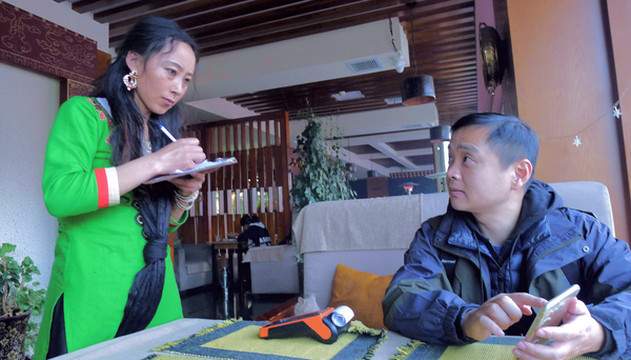 米拉山口是拉萨市墨竹工卡县与林芝市工布江达县的分界,下山就属工布江达地界。12:15驶抵工布江达县的松多镇,此处海拔4170米。我与邓师傅下车吃午饭,X.J.根本就没下车,也不想吃饭。邓师傅要求清淡,我也胃口不佳,于是只要了两份扬州炒饭与一份菜汤,我本来是想吃面条,但老板说煮面很麻烦,必须用高压锅,耗时又费力,否则煮不熟。