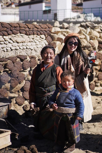 和当地84岁的老爷爷拍了张合影,他用藏语向我们介绍了拉布村的情况,还好我们有听得懂藏语的小伙伴可以翻译。