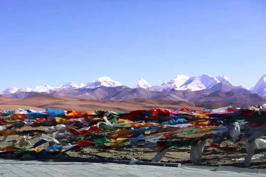 那一路虽然漫长,但是沿途风景极美。停下来拍拍照,垭口的风很大,吹动着五彩经幡。