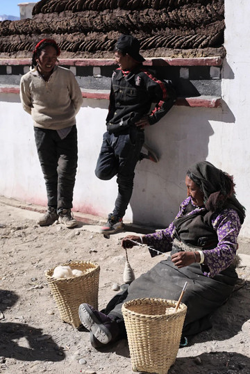 村口一个老奶奶在纺线,这是未漂白的纯羊毛的线。他们的毛衣,基本都是自己织的,用的都是自己纺的线,纯手工的温暖。