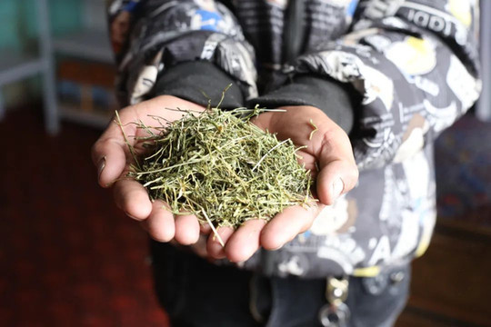 因为区域气候独特,整个拉布村种植了很多的雪山葱。这样一大盒能用一年的雪山葱,也就60多元。