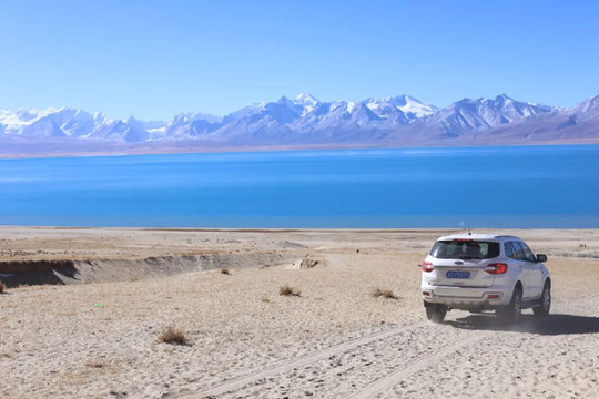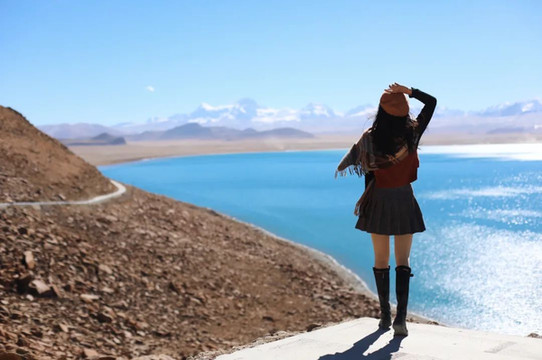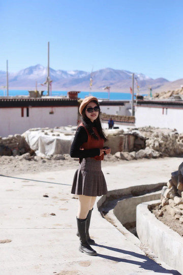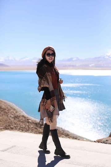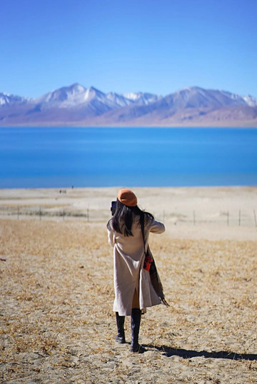 站在佩枯措观景台,有希夏邦马峰的倒影。虽然那天湖面不算平静,但那样过目不忘的湖蓝色,真的很美。