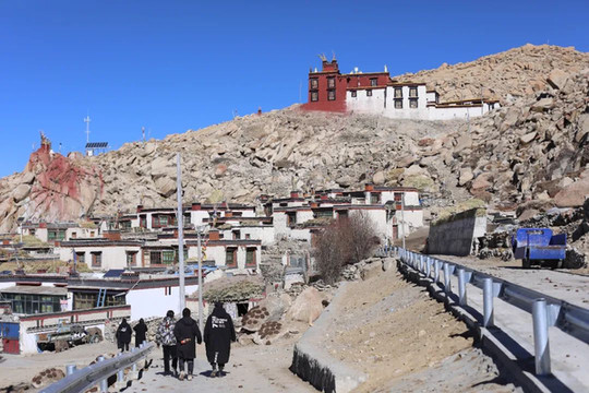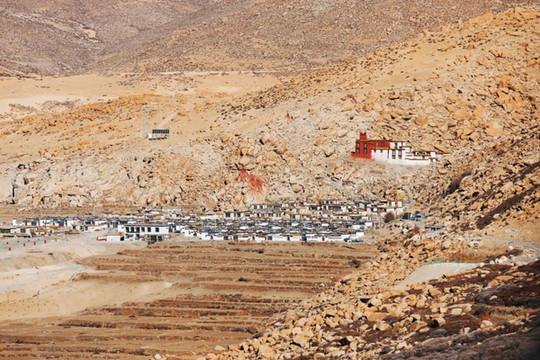 在佩枯措旁有一个小村庄,名叫拉布村。全村一共有251个人,全部是藏族同胞。远远望去,村子很小,在村子的高处,有一个红白色的寺庙。