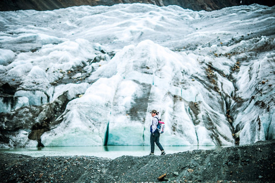 拥有强大动力的探岳面对泥水毫不畏惧,带我们轻松渡河。在距离冰川4公里的地方,我们停下,然后徒步到500米海拔的日弄巴冰川。当一座只能从山底仰望的雪山此时此刻就在你脚下的时候,那种感觉无以言表。就这样,我们忍受着高反带来的剧烈头痛,以及在夏季就可以感受到的严寒,一路披荆斩棘,抵达冰川脚下。