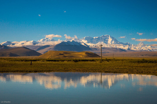 出镇的318国道,沿线有许多水潭,正好倒影着雪山,一路伴随到很远。