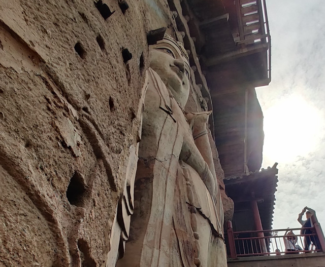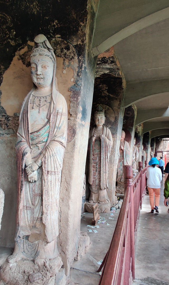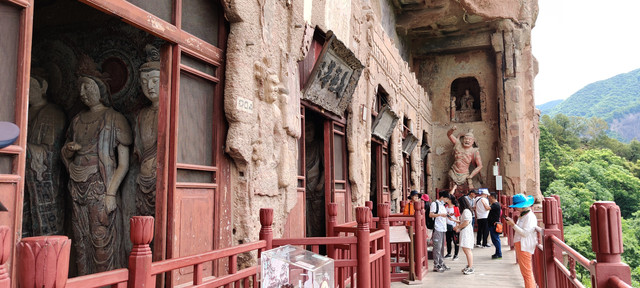 游览时我们了解到,麦积山石窟我们观看时,有一半以上未开放,有的在修缮,也有因人所呼出的二氧化碳以及游客触摸,使石窟内雕塑及彩绘褪色而未开放。