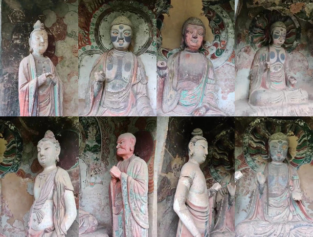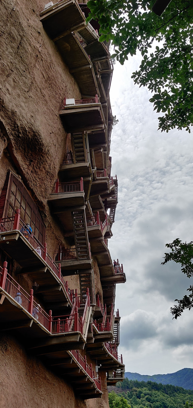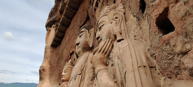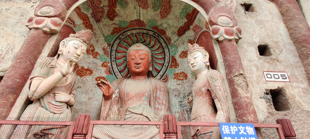 麦积山石窟,因外型像一堆“麦垛”而得名。坐落于“陇上江南”天水。石窟始建于384-417年,距今已有1600余年。据介绍,存有221座洞窟、10632身泥塑石雕、1300余平方米壁画。被誉为东方雕塑艺术陈列馆。