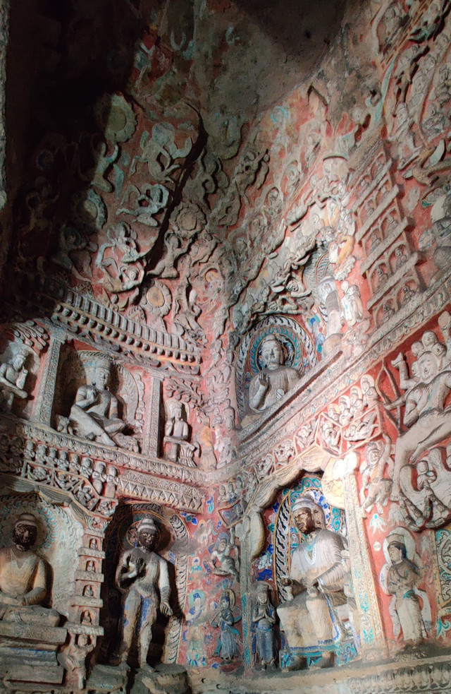 琳琅满目而又富丽堂皇的佛教艺术品。感叹古人精美雕作的匠人绝技。我们参观时窟内非常昏暗,手机拍摄没能留下更多图片。