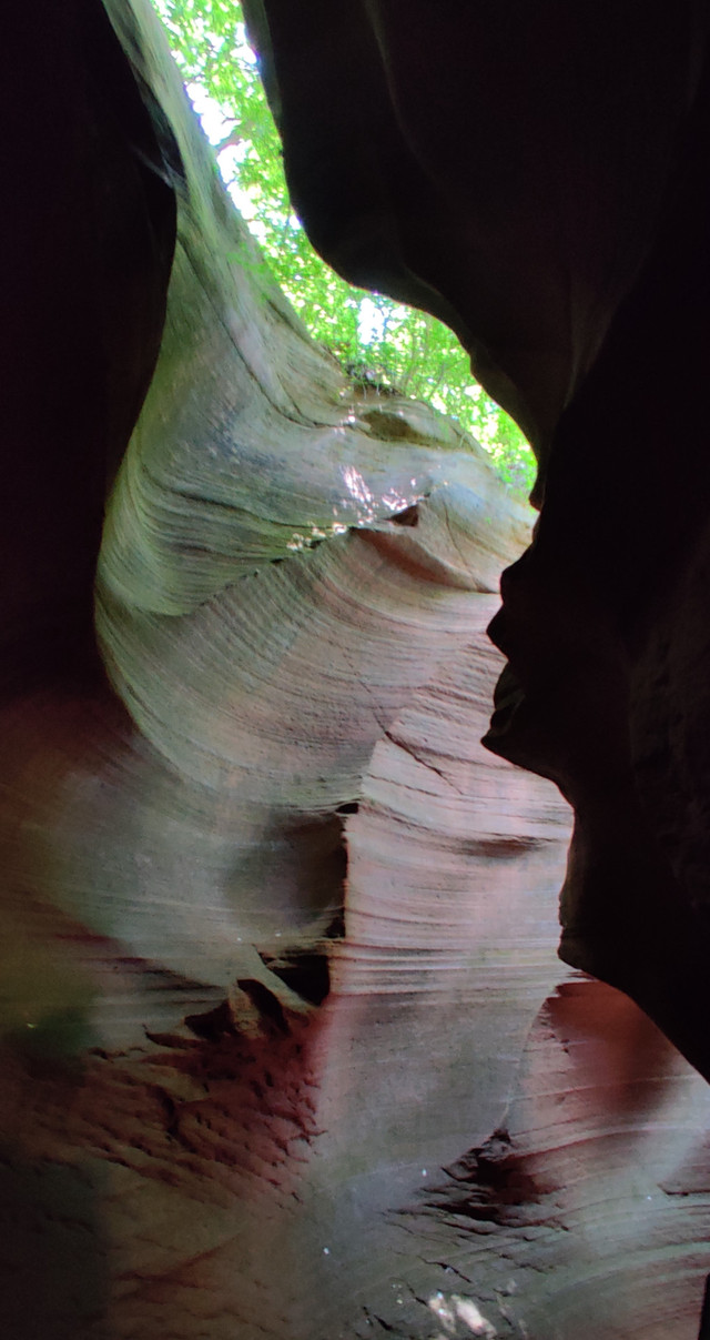 侧壁陡峭的山面上,静立着多座佛像,像是静观人世烟火。