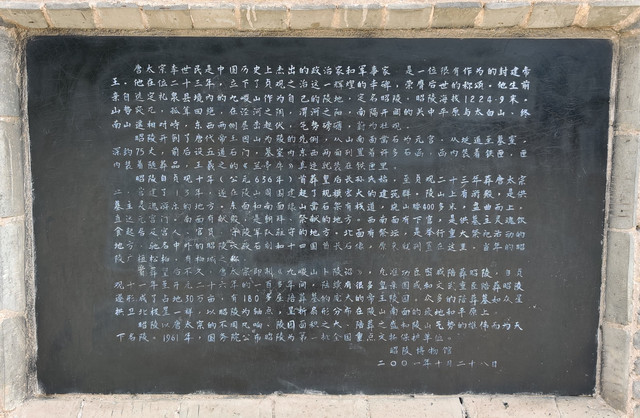 青砖碑石上,悉数了唐太宗在中国封建社会历史发展中的功绩,也详述了偌大昭陵气势磅礴的建造规模和过程。