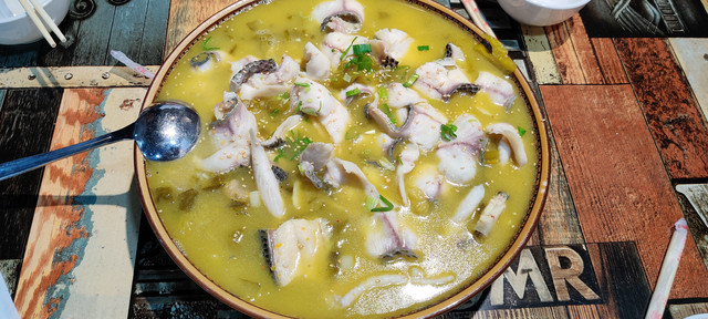 一锅酸汤水煮鱼,四人吃的津津有味。