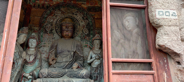 很多石窟用铁丝网罩着,或是完全遮挡。感觉存有的221座洞窟和10632身泥塑石雕,我们只看到很少一部分。