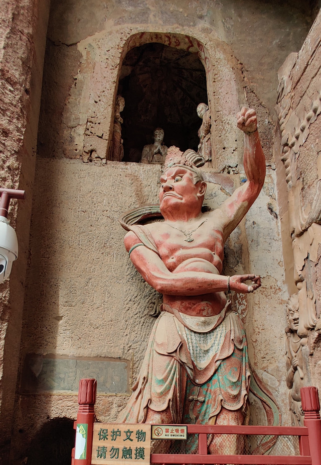 远望麦积洞窟,窟山一体,密如蜂房,以绝壁佛国闻名于世。有感于古人的智慧,创造出如此精美绝伦的艺术奇迹。还好,在进藏之前我们没有错过。