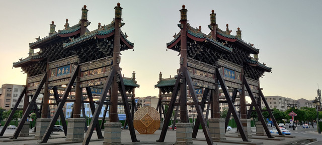 大同四牌楼,第一次见这样的牌楼,东南西北都有立牌,各对一条街,看似分立但浑然一体很壮观。
