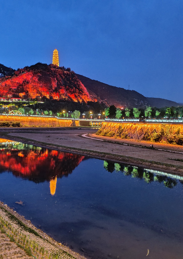也欣赏了延河水夜晚的美景