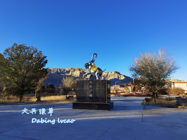 札达县城的西面有一个托林广场,清晨的广场空空如也,既没有行人,更无游人,只有红色尖顶的大菩提塔耸立在广场一侧,稍小一些的佛塔在不远处被铁丝网保护着,里面的托林寺没有开门。